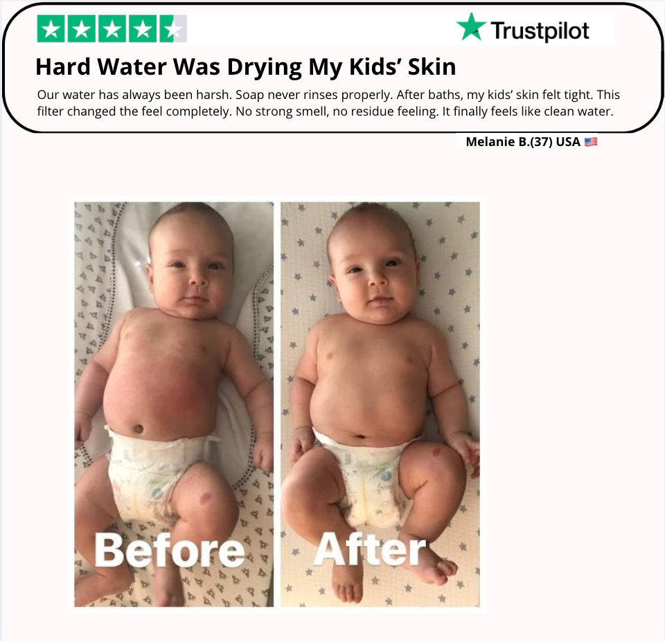 Transforms harsh tap water into softer, gentler bath water — even in hard-water areas.Your child’s skin feels comfortable after baths, not tight or dry.