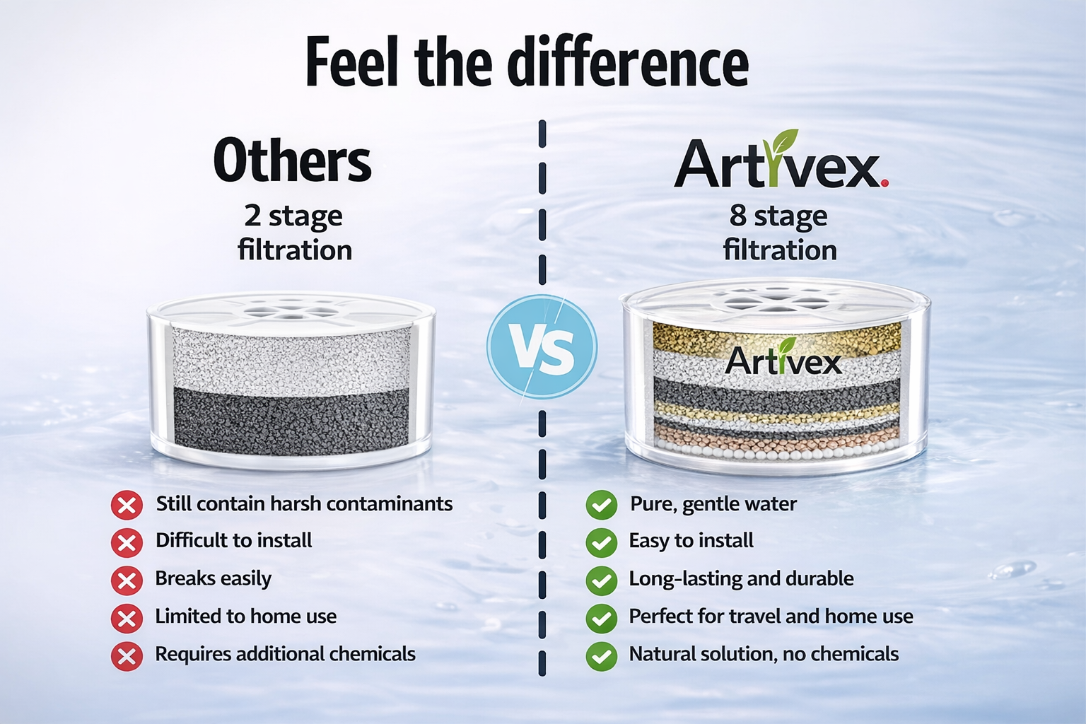 Reduces daily exposure to common water contaminants without changing your routine.Giving you peace of mind from the very first bath.